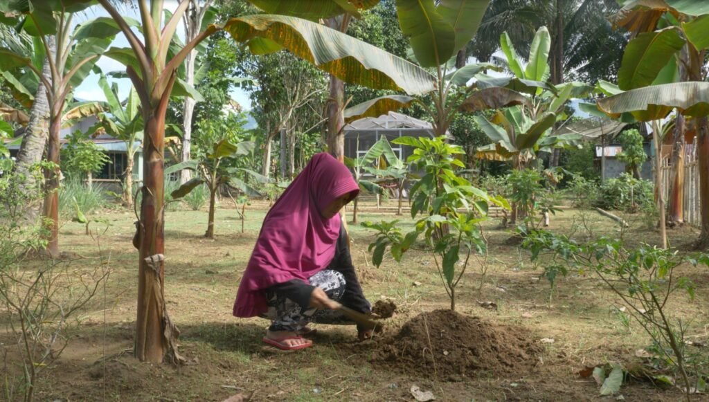 Khadija merupakan salah satu warga Warga Desa Ilomata, Kecamatan Bulango Ulu, Kabupaten Bone Bolango. Tiga tahun terakhir ia sudah menerapkan pertanian agroforestri. Model bertani monokultur jagung perlahan ia tinggalkan. Bukan hanya itu saja, ia juga sudah memanfaatkan lahan kosong di halaman rumahnya.