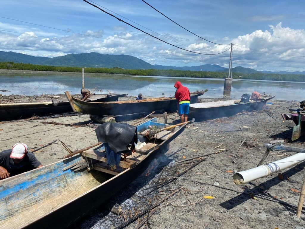 Keesokan harinya, perahu yang sudah kering diangkat ke atas kayu penyangga agar terdapat ruang kosong di bawahnya. Proses mengangkat perahu tidak dilakukan sendirian, melainkan secara gotong royong, sebagaimana kebiasaan warga membakar perahu bersama-sama setiap Jumat—hari libur nelayan di Torosiaje.