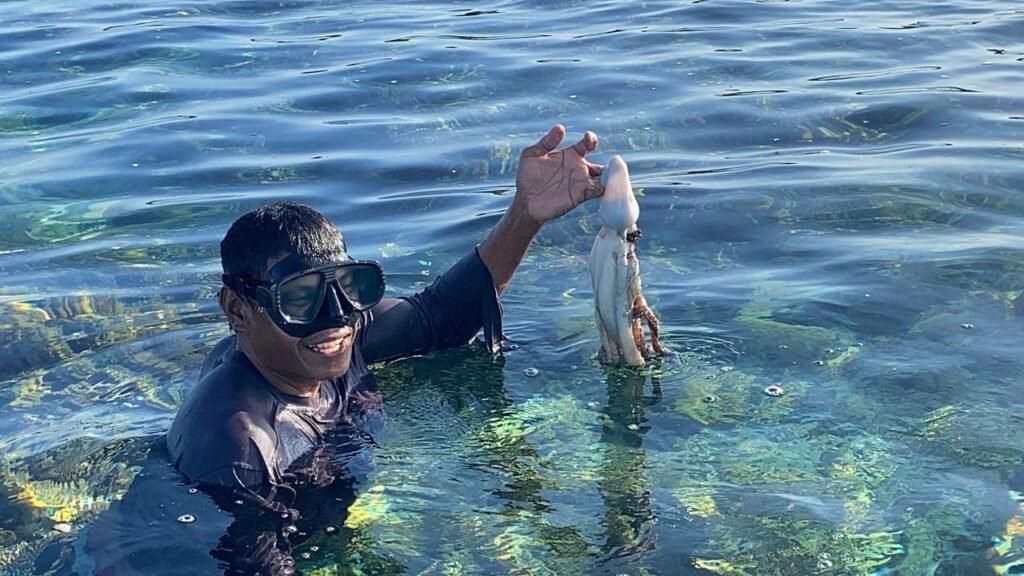“Belum beberapa menit menyelam sudah dapat gurita. Guritanya banyak,” timpalnya.